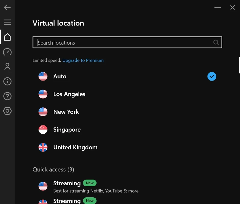 该 VPN 在 25 个国家/地区拥有 2,500 台服务器,可提供每秒 0.54 兆字节的快速连接。